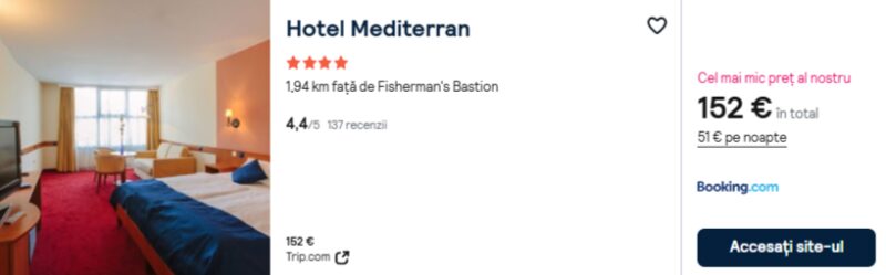 125 €/pers. (zbor si cazare Hotel Mediterran )