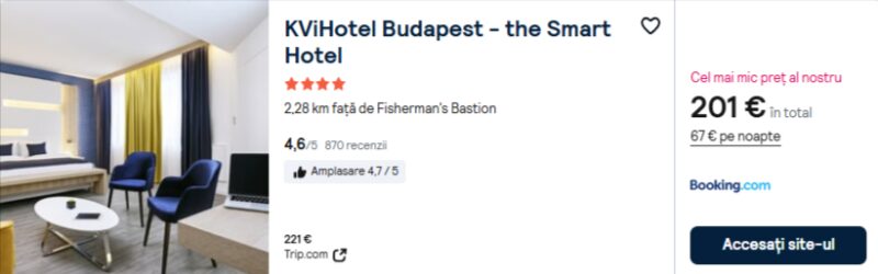 150 €/pers. (zbor si cazare KViHotel Budapest – the Smart Hotel )