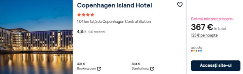 240 €/pers. (zbor si cazare Copenhagen Island Hotel )