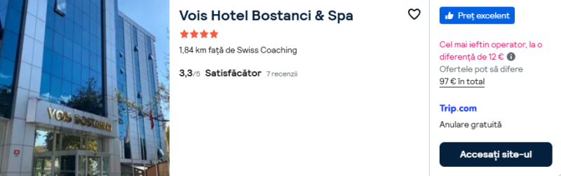 98 €/pers. (zbor si cazare Vois Hotel Bostanci & Spa )