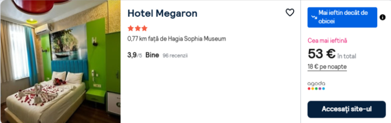 86 €/pers. (zbor si cazare Hotel Megaron )