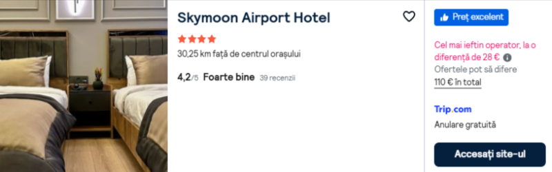 119 €/pers. (zbor si cazare Skymoon Airport Hotel )