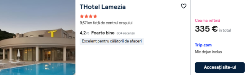 218 €/pers. (zbor si cazare THotel Lamezia )