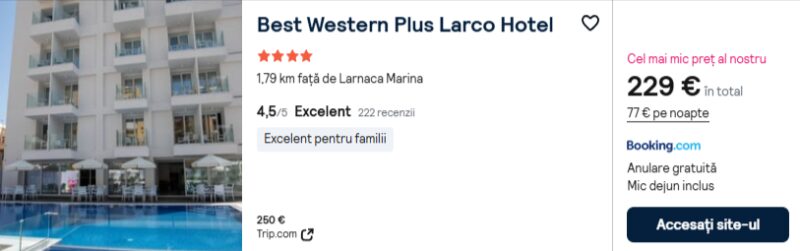 165 €/pers. (zbor si cazare Best Western Plus Larco Hotel )