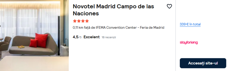 272 €/pers. (zbor si cazare Novotel Madrid Campo de las Naciones )