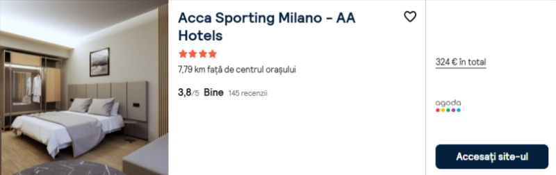 204 €/pers. (zbor si cazare Acca Sporting Milano – AA Hotels )