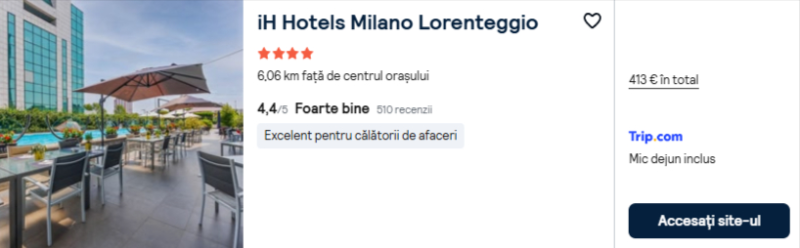 249 €/pers. (zbor si cazare iH Hotels Milano Lorenteggio )