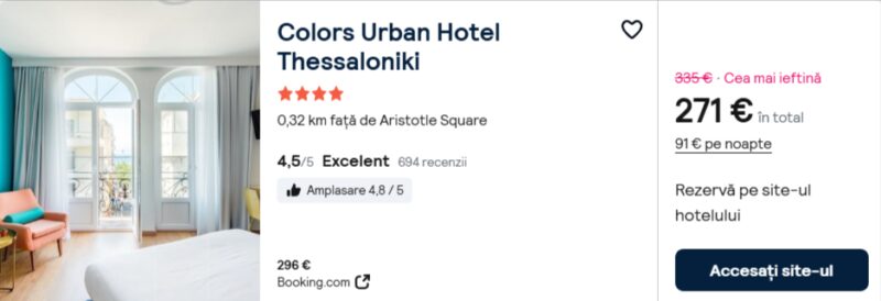 185 €/pers. (zbor si cazare Colors Urban Hotel Thessaloniki )