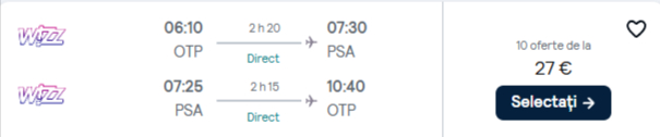 184 €/pers. (zbor si cazare Hotel Galilei )