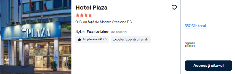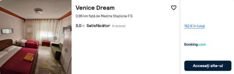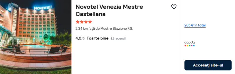 180 €/pers. (zbor si cazare Novotel Venezia Mestre Castellana )
