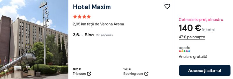 105 €/pers. (zbor si cazare Hotel Maxim )