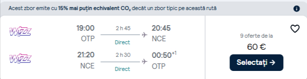 158 €/pers. (zbor si cazare City Résidence Nice )