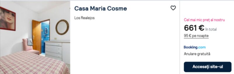 595 €/pers. (zbor si cazare Casa Maria Cosme )