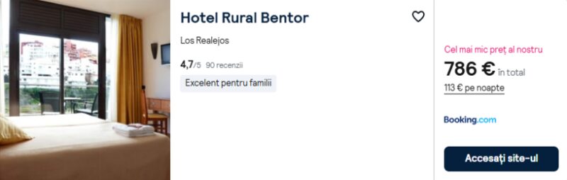 657 €/pers. (zbor si cazare Hotel Rural Bentor )