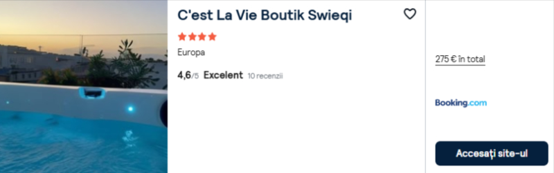 138 €/pers. ( cazare C’est La Vie Boutik Swieqi )