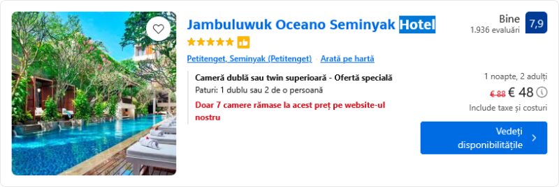 24 €/pers. ( cazare Jambuluwuk Oceano Seminyak Hotel )