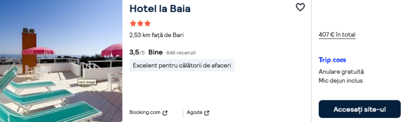 237 €/pers. (zbor si cazare Hotel la Baia )