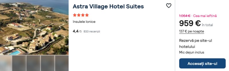 678 €/pers. (zbor si cazare Astra Village Hotel Suites )