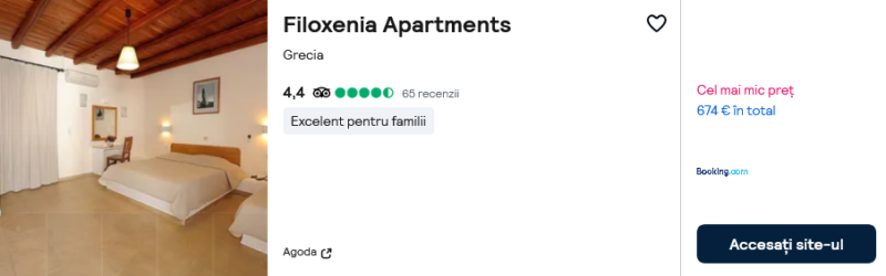 618 €/pers. (zbor si cazare Filoxenia Apartments )