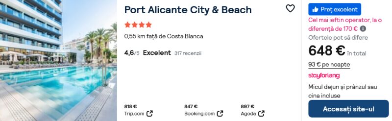 387 €/pers. (zbor si cazare Port Alicante CIty & Beach )