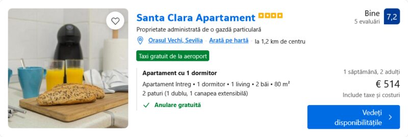 366 €/pers. (zbor si cazare Santa Clara Apartament )