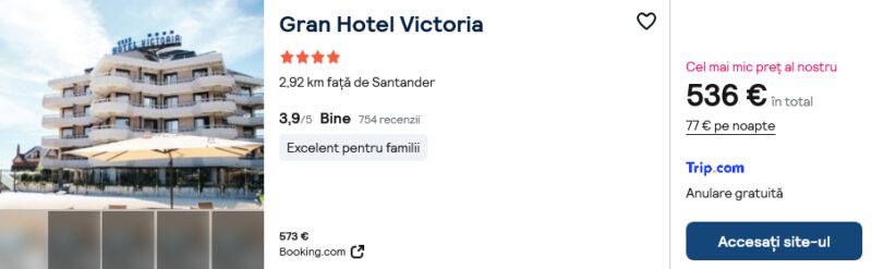 331 €/pers. (zbor si cazare Gran Hotel Victoria )