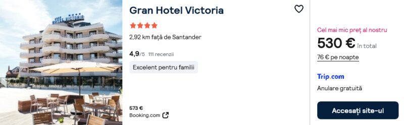 313 €/pers. (zbor si cazare Gran Hotel Victoria )