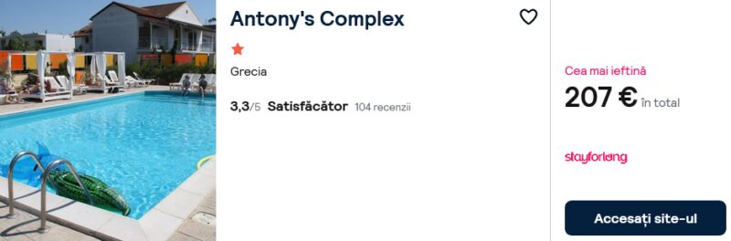 144 €/pers. (zbor si cazare Antony’s Complex )