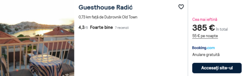 291 €/pers. (zbor si cazare Guesthouse Radić )