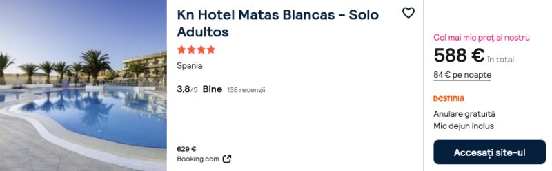 423 €/pers. (zbor si cazare Kn Hotel Matas Blancas )