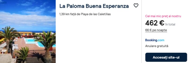 366 €/pers. (zbor si cazare La Paloma Buena Esperanza )
