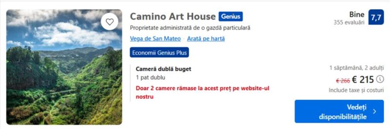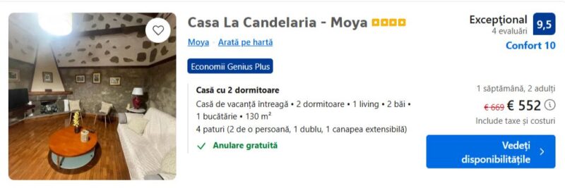 395 €/pers. (zbor si cazare Casa La Candelaria – Moya )