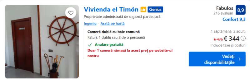 291 €/pers. (zbor si cazare Vivienda el Timón )