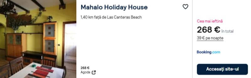 259 €/pers. (zbor si cazare Mahalo Holiday House )