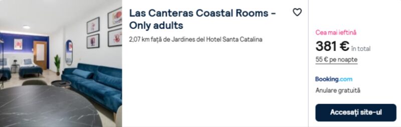 316 €/pers. (zbor si cazare Las Canteras Coastal Rooms – Only adults )
