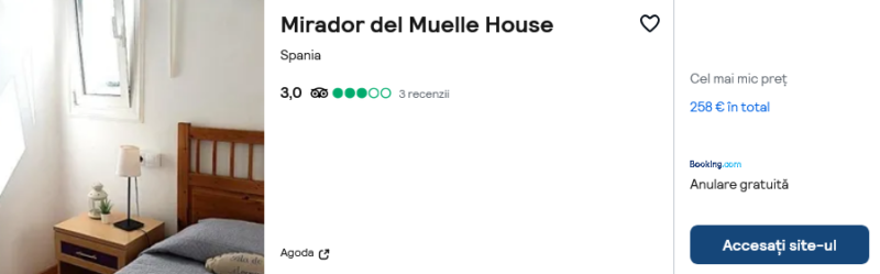 300 €/pers. (zbor si cazare Mirador del Muelle House )