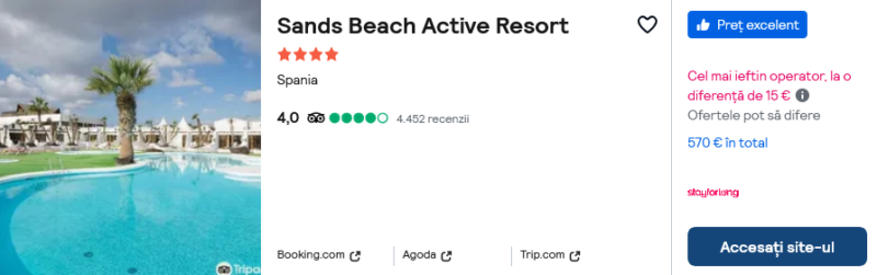 456 €/pers. (zbor si cazare Sands Beach Active Resort )