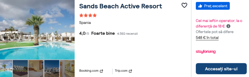 480 €/pers. (zbor si cazare Sands Beach Active Resort )