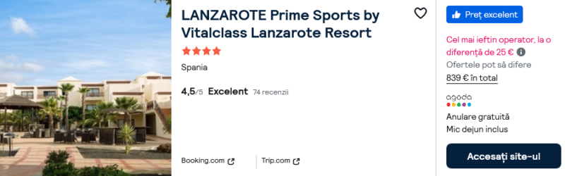 626 €/pers. (zbor si cazare LANZAROTE Prime Sports by Vitalclass )