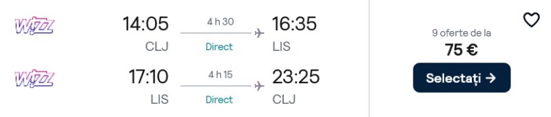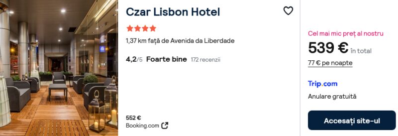 345 €/pers. (zbor si cazare Czar Lisbon Hotel )