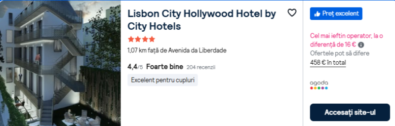 343 €/pers. (zbor si cazare Lisbon City Hollywood Hotel by City Hotels )