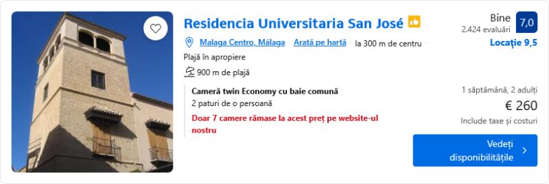188 €/pers. (zbor si cazare Residencia Universitaria San Jose )