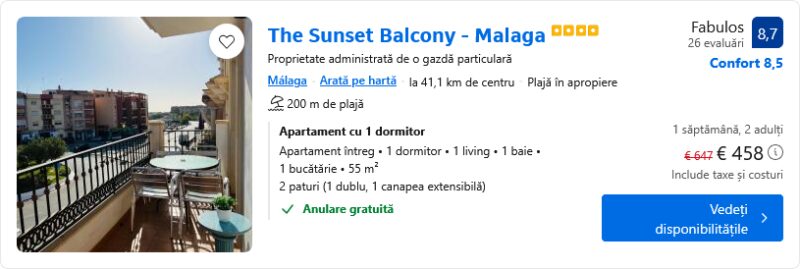 287 €/pers. (zbor si cazare The Sunset Balcony )