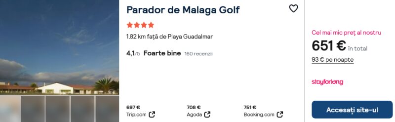 386 €/pers. (zbor si cazare Parador de Malaga Golf )