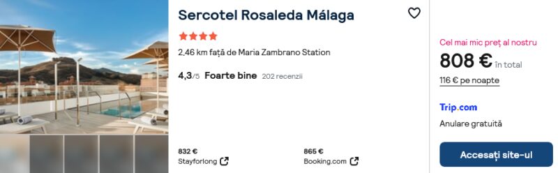 464 €/pers. (zbor si cazare Sercotel Rosaleda Malaga )