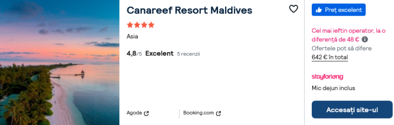 1092 €/pers. (zbor si cazare Canareef Resort Maldives )