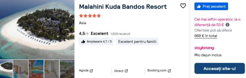 1255 €/pers. (zbor si cazare Malahini Kuda Bandos Resort )