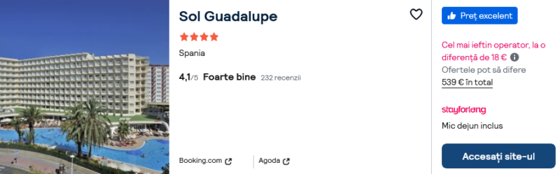 378 €/pers. (zbor si cazare Sol Guadalupe )