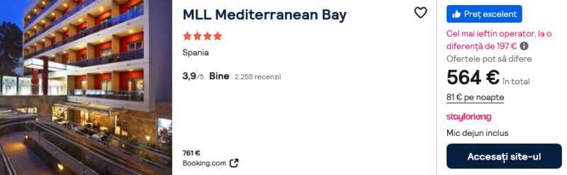 391 €/pers. (zbor si cazare MLL Mediterranean Bay )