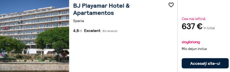 453 €/pers. (zbor si cazare BJ Playamar Hotel )